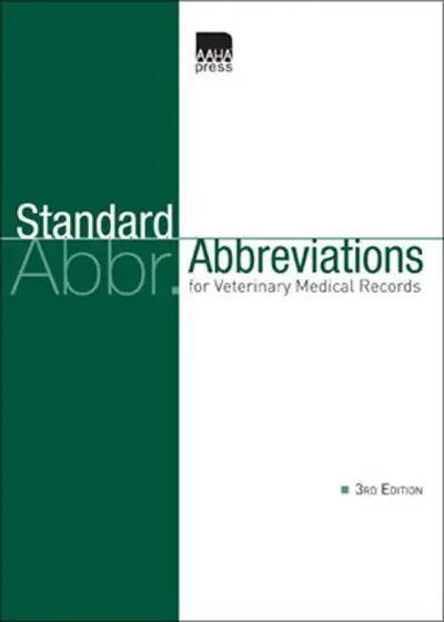 Updated and expanded, the third edition ofย Standard Abbreviations for Veterinary Medical Recordsย contains more than 650 general medical abbreviations, plus a section with more than 100 imaging abbreviations. Now alphabetized by abbreviation and by definition, it also includes special sections for oncology drug protocols and grading systems for conditions such as heart failure and heart murmur.